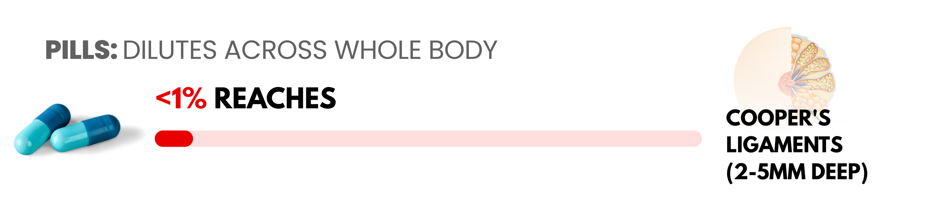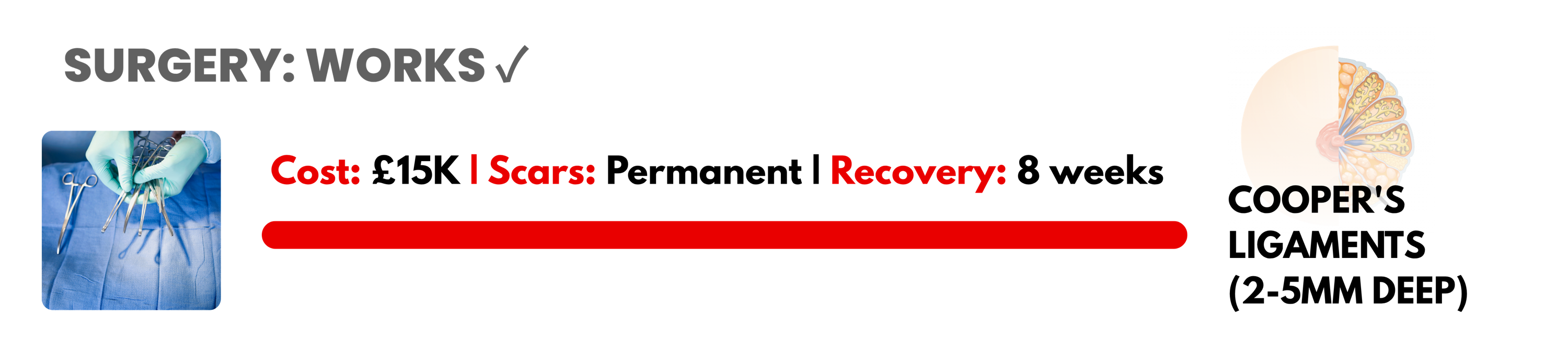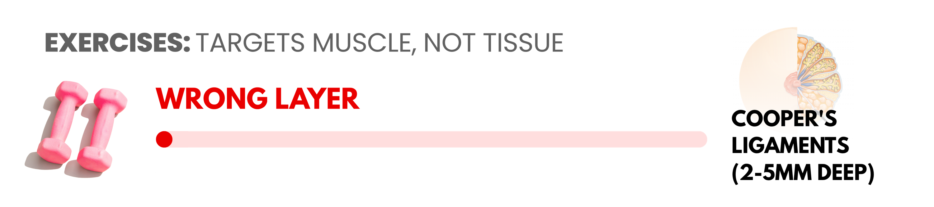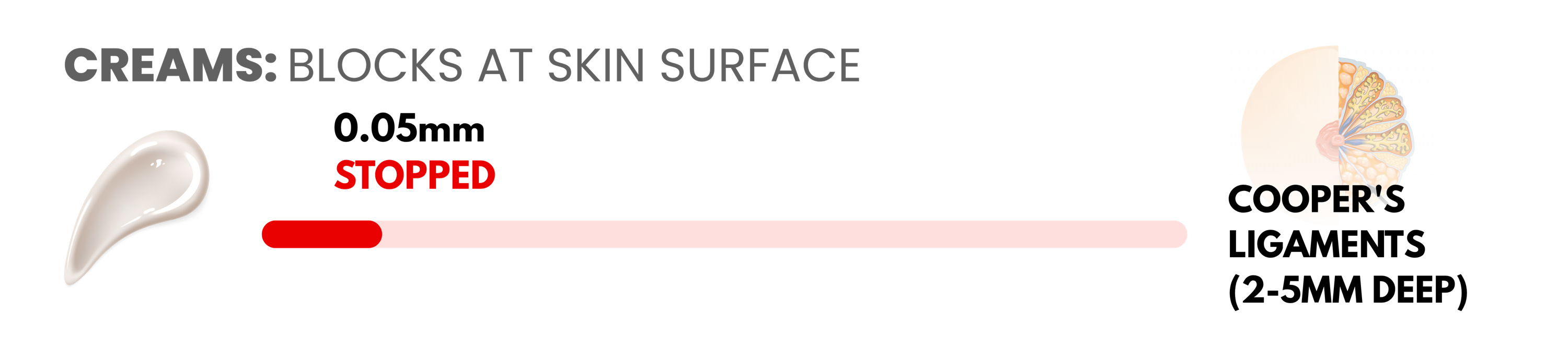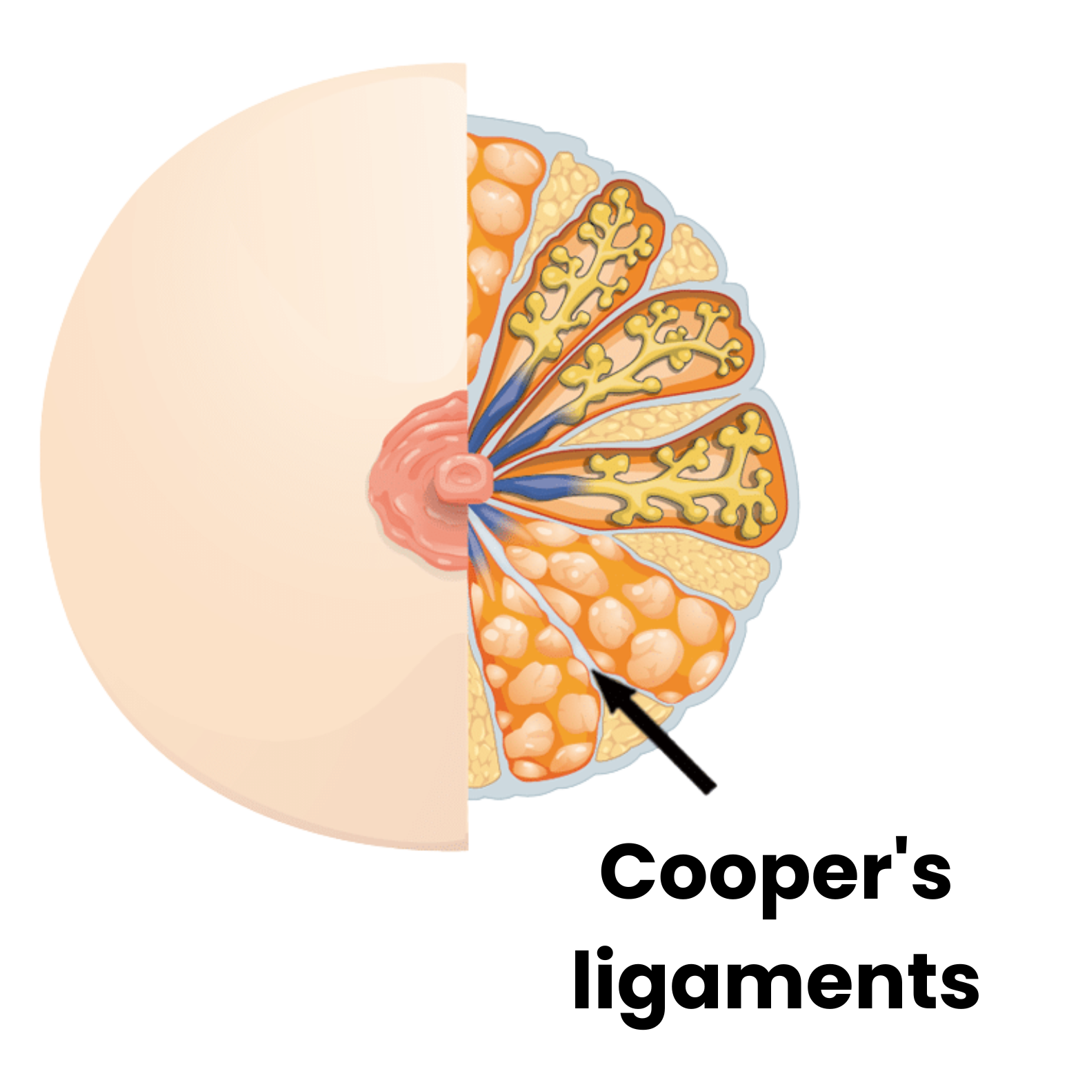 Your breasts are supported by Cooper's ligaments—thin strands of connective tissue that sit 2-5mm BELOW your skin surface.